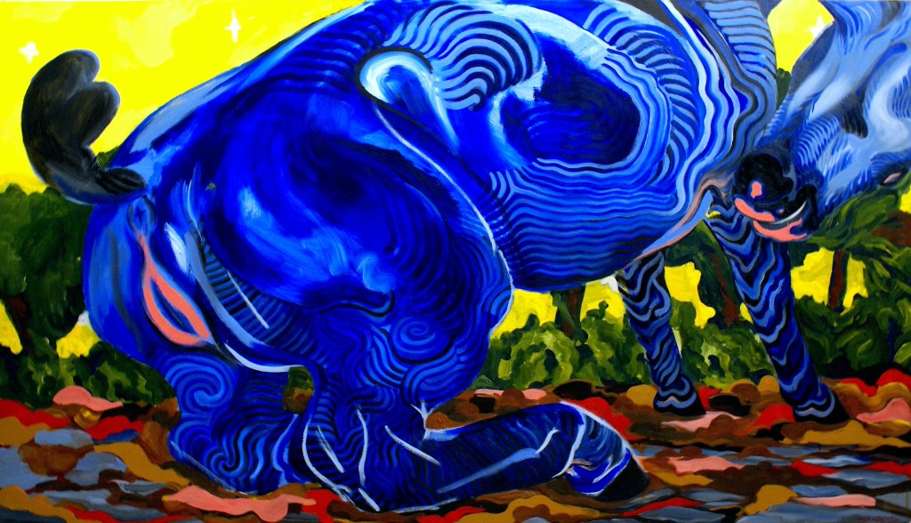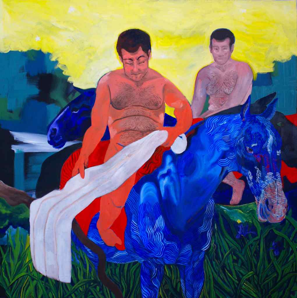 HIPPUS is a focus of using sex organs in plain sight as a deliberate and confrontational shift. This painting addresses the cultural absence, discomfort, and shame surrounding genitalia, while also acknowledging the power and vulnerability that visibility can provoke.